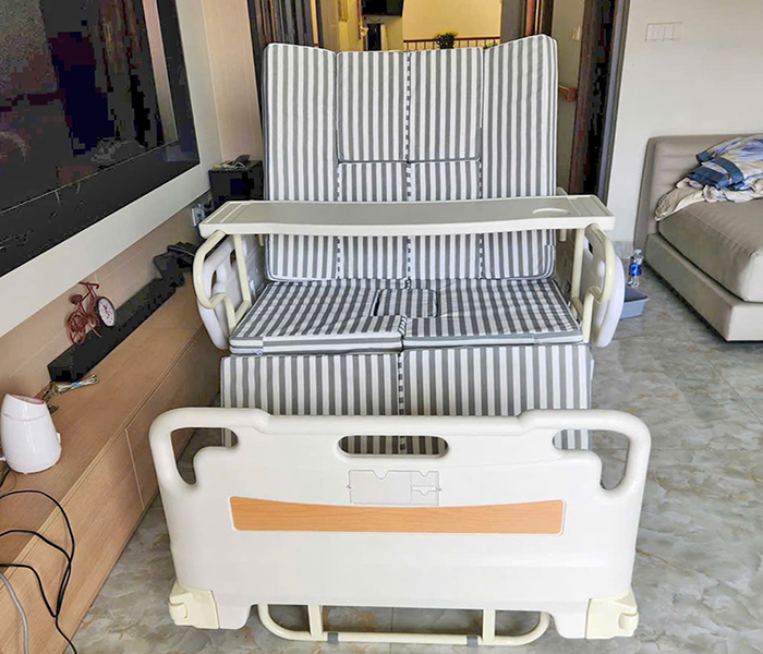 - Nâng lưng (0-85°) & Hạ lưng: Giúp người bệnh ngồi dậy ăn uống, thư giãn. Đặc biệt có tính năng bó sát hai bên vai giúp người bệnh ngồi thẳng, không bị nghiêng ngã.