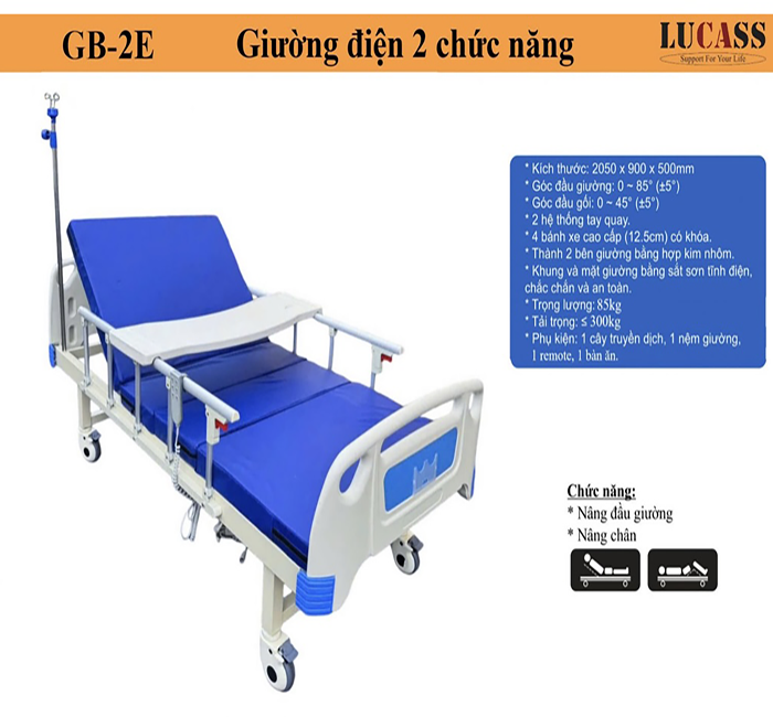 GIỚI THIỆU GIƯỜNG Y TẾ ĐIỆN 2 CHỨC NĂNG LUCASS GB-2D
