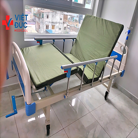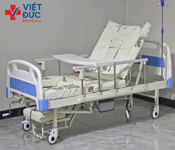 - Giường Y Tế 3 tay quay: Được trang bị tay quay để nâng chân, nâng lưng, đặc biệt có trang bị thêm bô vệ sinh để giúp bệnh nhân có thể thuận tiện vệ sinh tại chổ mà không mất thời gian di chuyển đi đâu.
