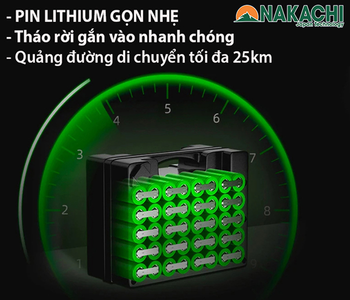 7. Pin lithium cho độ bền cao di chuyển xa 25km: dòng xe lăn điện NC-001 khung nhôm gấp gọn và sử dụng Pin lithium để tăng cường quảng đường di chuyển, giảm trọng lượng xe và đặc biệt pin lithium cho hiệu quả sử dụng lâu dài hơn so với các dòng xe lăn sử dụng bình Ắc quy thông thường.